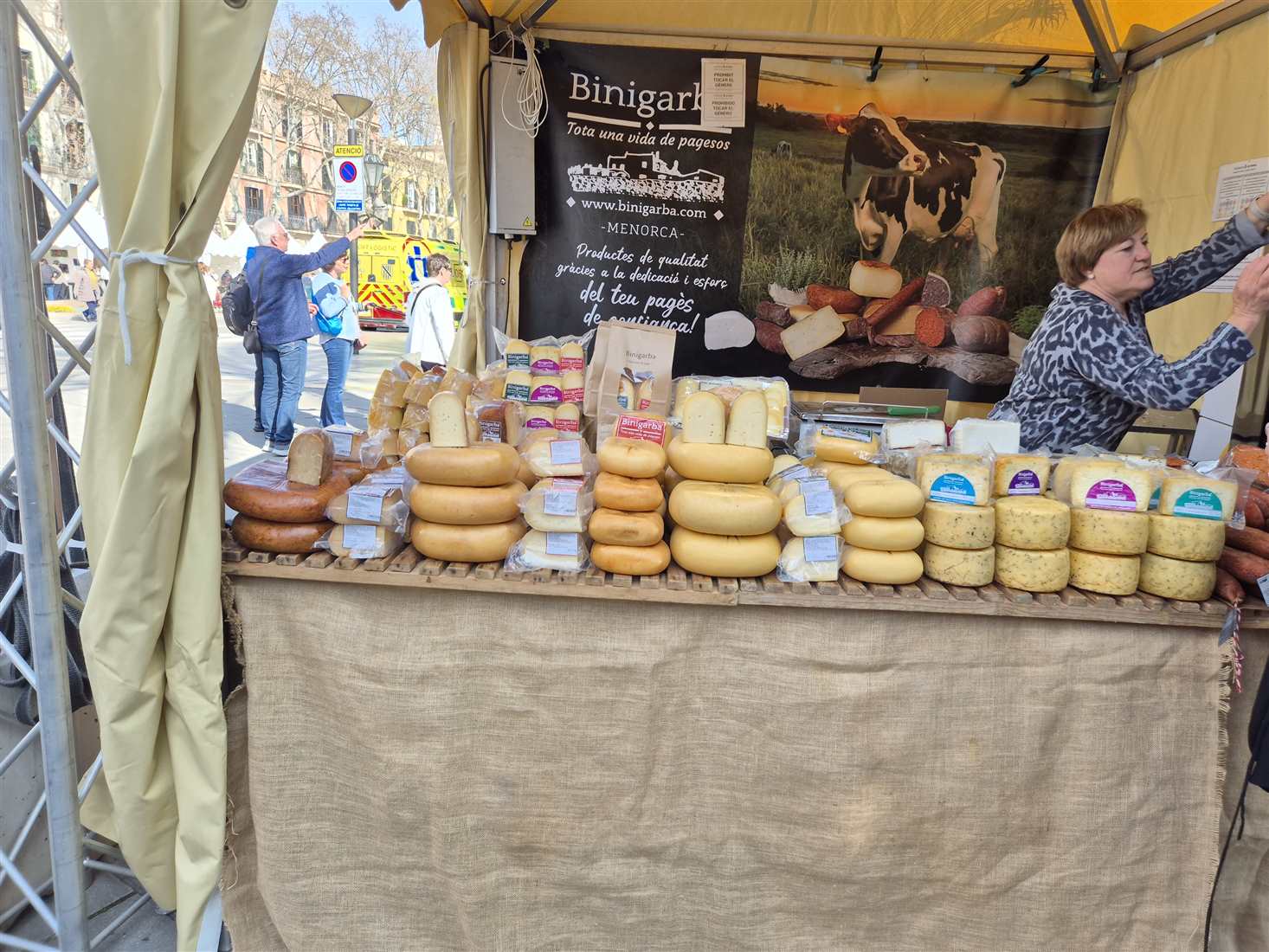 On February 27, we visited Mallorca. We had been there before. We were lucky because it was the Day of the Balearic Islands: Día de les Illes Balears. Because of the festivities there was an extended market with all kinds of local regional products. What struck us most was the number of cheese varieties. We tasted a lot of things and I must say the cheese tasted delicious.