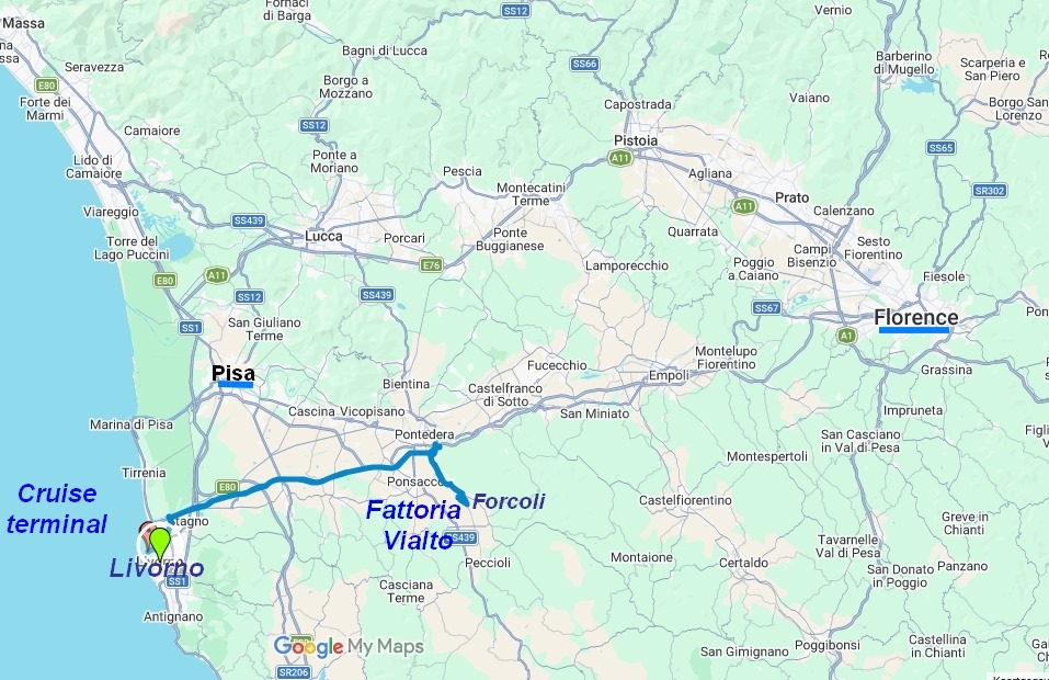 western Tuscany. This port is not far from Pisa and Florence. We had explored Florence extensively before and touristy Pisa did not appeal to us that much.